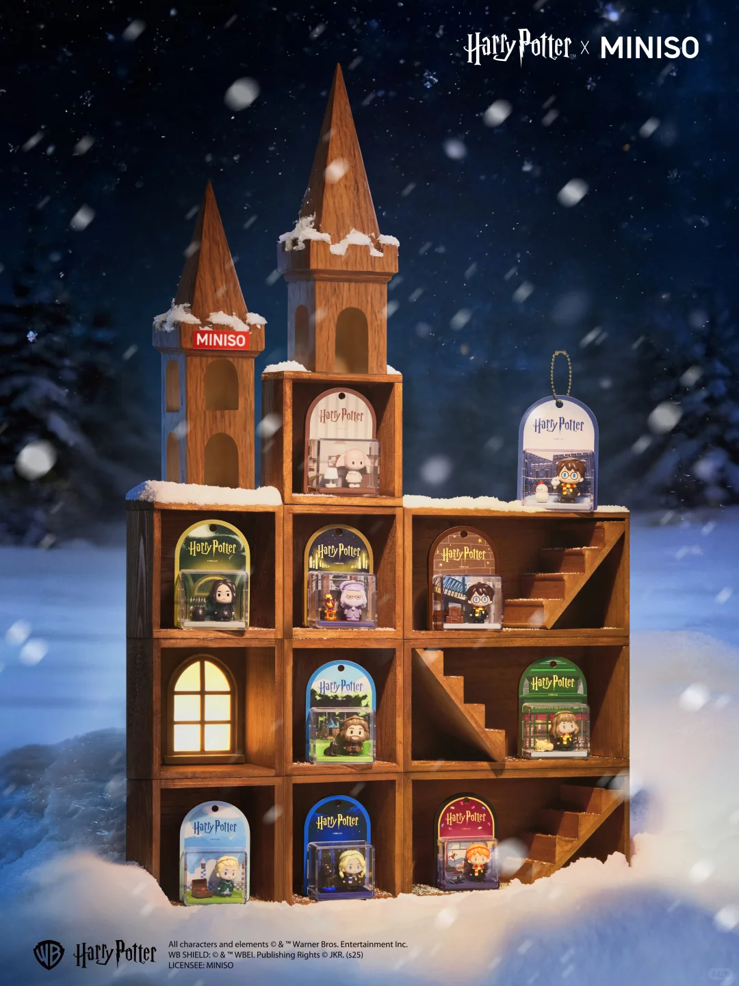 全系列一共包含 9 個常規款及 1 款驚喜隱藏版,每個角色都有屬於自己的專屬場景,讓公仔能穩穩地待在自己的魔法小世界裡,充滿故事感。常規款式涵蓋了多個經典瞬間,包括了哈利在最經典的 9¾ 站台、海格與他的林中小屋、榮恩與他的寵物鼠Scabbers、妙麗伴隨著愛貓Crookshanks、鄧不利多校長與鳳凰Fawkes,甚至還有石內卜教授的魔藥「煉丹爐」、多比與溫馨小房間以及路娜和馬份的專屬場景。而最令人期待的隱藏版則是哈利與寵物貓頭鷹Hedwig站在霍格華茲校外落雪的場景,整個系列細節精緻到位,簡直是回憶感十足的精品,各位哈迷千萬別錯過!