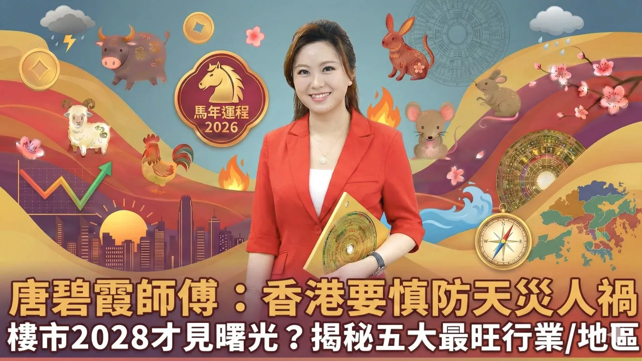 踏入2026年丙午馬年,香港整體的經濟與民生運勢將會如何走向?著名堪輿學家唐碧霞師傅接受 U Lifestyle 的訪問時,為大家詳細分析香港整體運勢、樓市、股市走向,並揭秘馬年五行最旺行業以及香港三大「行運」地區,助你在新一年趨吉避凶,早著先機。