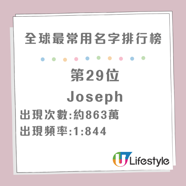 相信大家身邊總有一個「家樂」、「嘉欣」或者「Crystal」,但放眼全世界,到底哪一個名字才是真正的「世一」?最近一項全球姓名大數據統計出爐,列出了 全球首 30 位最常用名字(Forenames),結果相當驚人,統計顯示有些名字的普及程度,甚至每 100 多人中就有一個,快來看看你的名字有沒有榜上有名!!