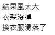 「結果風太大 衣架沒掉 換衣服滑落了 」