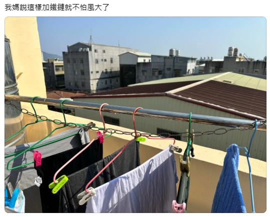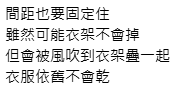 「雖然可能衣架不會掉 但會被風吹到衣架疊一起 衣服依舊不會乾」