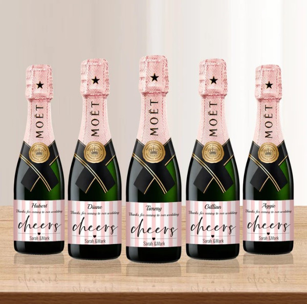 婚禮回禮小禮物推薦|1.Moët & Chandon迷你Rose香檳 (客製化) HK$3,208 / 200ml x 10支