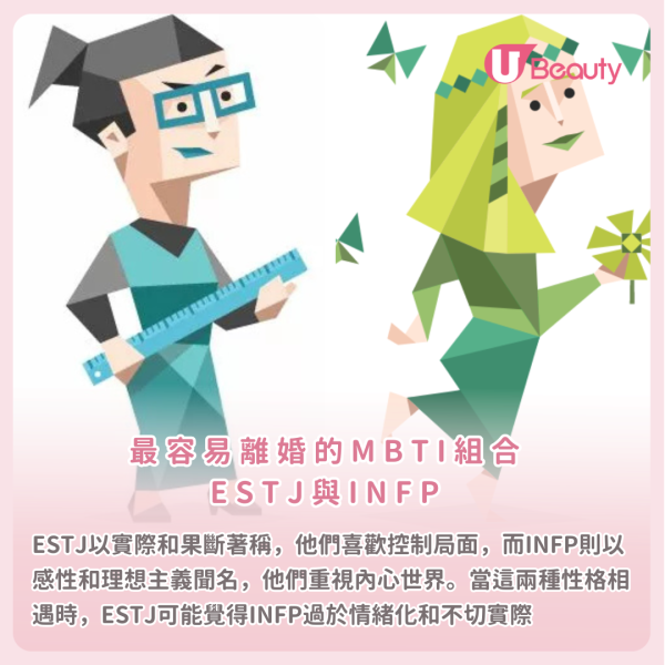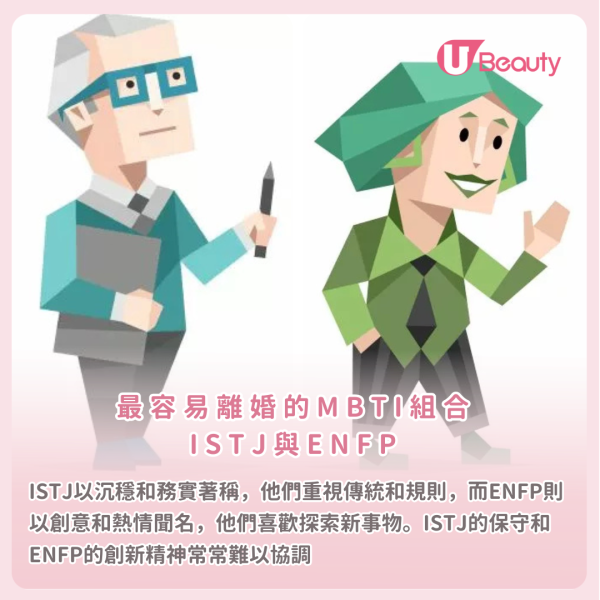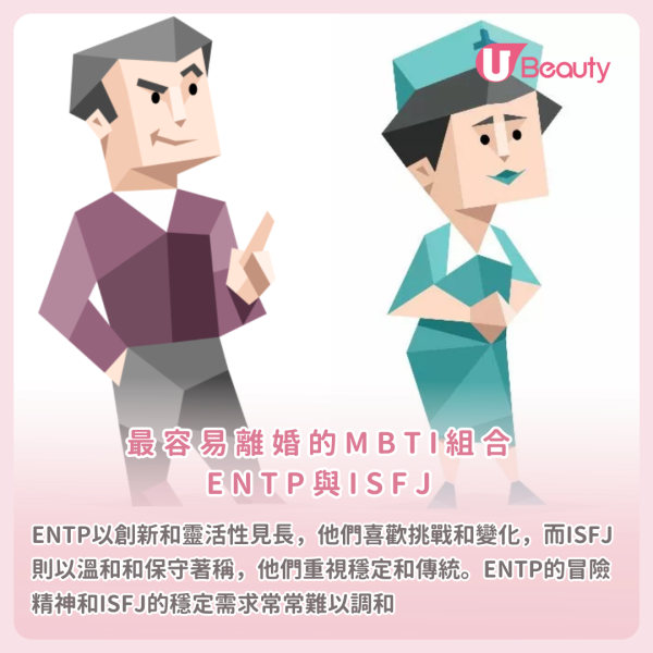 很多人都說:「相愛容易,相守難」,婚姻讓兩個人從甜蜜的戀愛走進柴米油鹽的生活,日常相互的點點滴滴都可能成為價值觀衝突的導火線,尤其是本來就性格不合的兩個人,婚後自然是會面對更多的挑戰!帶你看看4對「最容易離婚的MBTI組合」,來看看你和另一半有沒有上榜吧!(文章由《就醬Young》授權轉載)