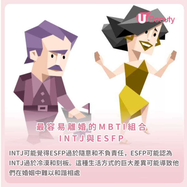 最容易離婚的MBTI組合3:INTJ(建築師)與ESFP(表演者)
