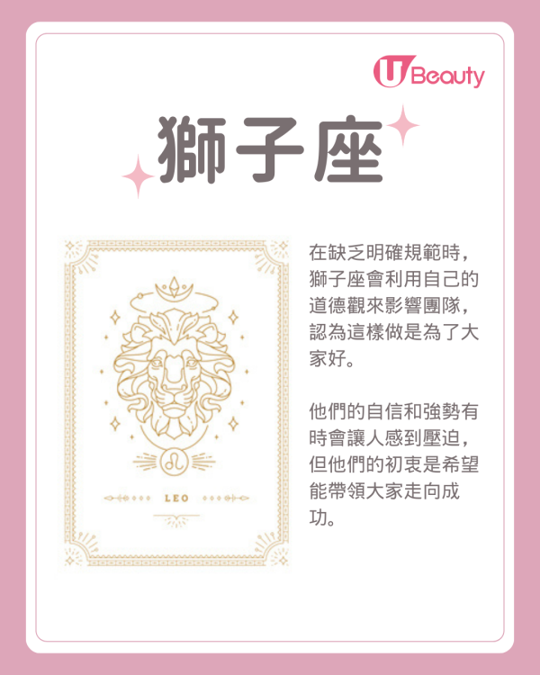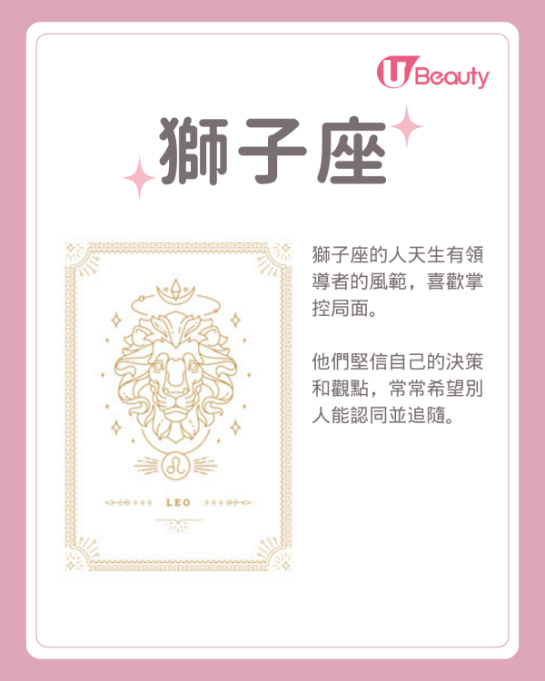 獅子座的人天生有著領導者的風範,喜歡掌控局面。他們堅信自己的決策和觀點,常常希望別人能認同並追隨。