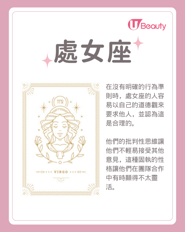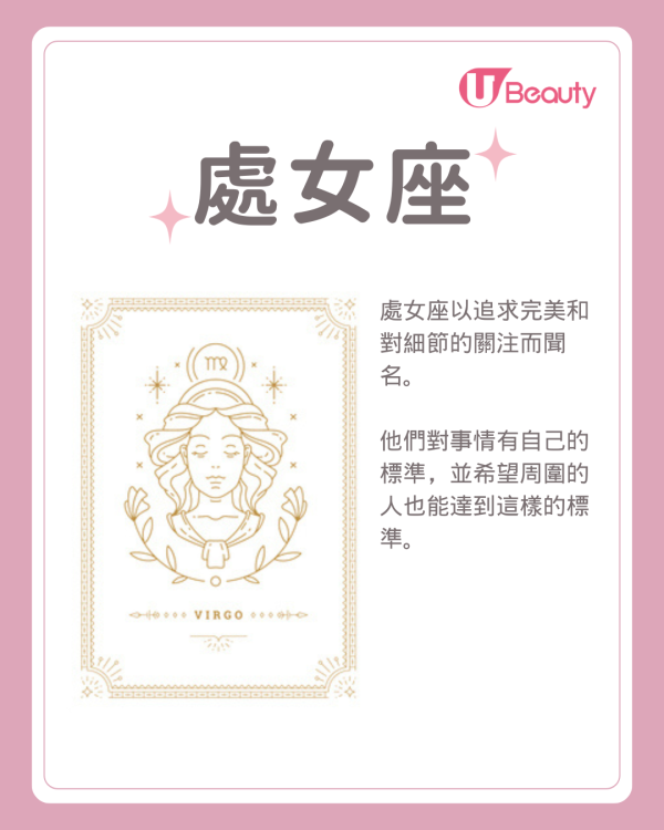 處女座以追求完美和對細節的關注而聞名。他們對事情有自己的標準,並希望周圍的人也能達到這樣的標準。