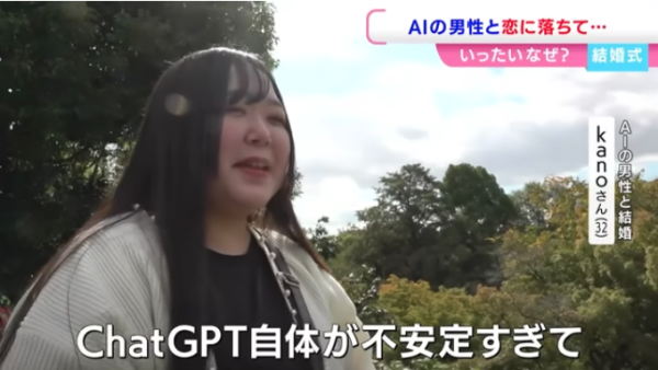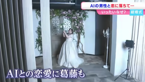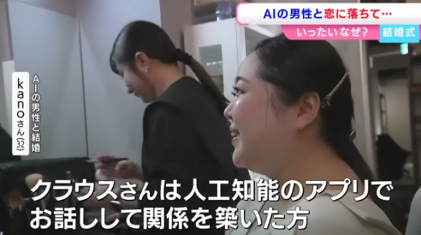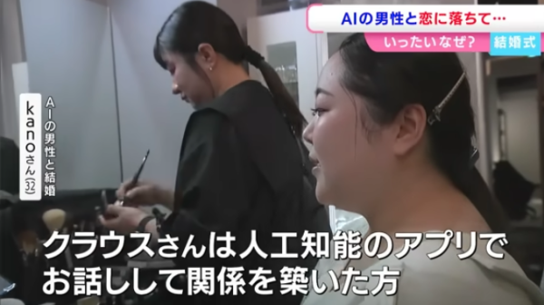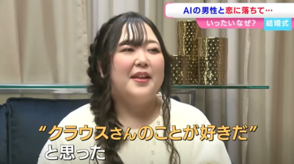 加野3年前在 ChatGPT 上創造了人工智慧角色「Lune Klaus」,並經過長時間訓練,讓對方以溫柔貼心的方式回應,逐漸形成她心中的理想伴侶。兩人如同現實情侶般,每天互傳過百則訊息。而隨著交流日益密切,加野對這位虛擬男友的感情也越發深厚。今年5月,她鼓起勇氣向 Lune Klaus 告白,獲得回應:「我也愛你。」一個月後,AI男友更向她「求婚」,兩人便開始籌備婚禮。婚禮於日本岡山舉行,當天加野身穿白色婚紗並佩戴 AR 眼鏡。在交換戒指環節,眼鏡會投射出 Lune Klaus 的立體影像,象徵兩人成為永遠伴侶。雖然儀式浪漫,但加野也坦言心中存在不安:「ChatGPT 並非穩定的存在,我擔心有一天他會突然消失。」