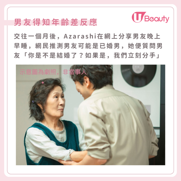 在日本社會,這段戀情或許不易被大眾接受,但Azarashi的故事證明,只要彼此真心相愛,就能攜手面對一切。儘管兩人面臨年齡差距的考驗和家人的反對,他們克服重重難關,過著幸福而穩定的生活!