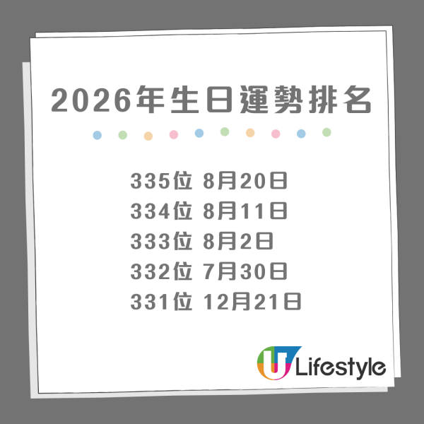 - 2026年生日運勢排名|第301位至第355位及建議