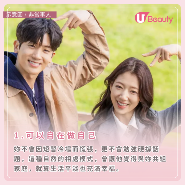 男生想娶回家的大多是那種「相處好舒服」的女生。你們能一起吃飯、各自滑手機,偶爾安靜片刻也不尷尬,反而帶來安全感。妳不會因短暫冷場而慌張,更不會勉強硬撐話題,這種自然的相處模式,會讓他覺得與妳共組家庭,就算生活平淡也充滿幸福。