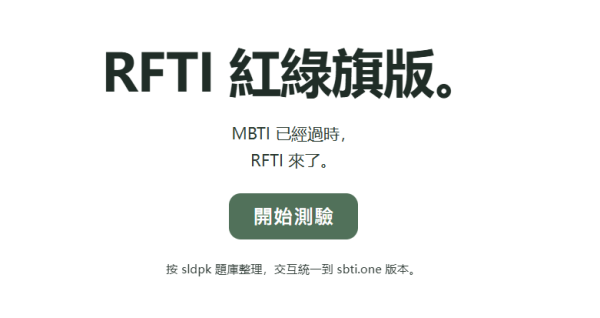 RFTI全稱為Red Flag Type Indicator,它的起源並不是專業心理學研究,而是香港網民自創的本土化 MBTI 測試,並融入「零尊戀愛腦」、「茶記判官」等網路熱梗,引起不少香港網民的集體共鳴。