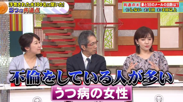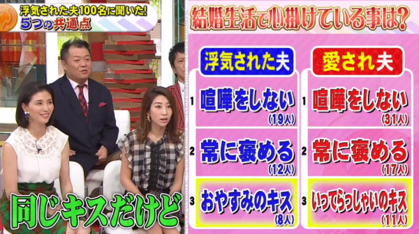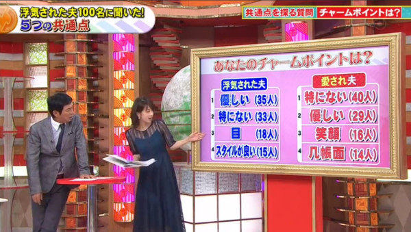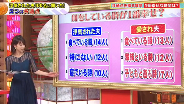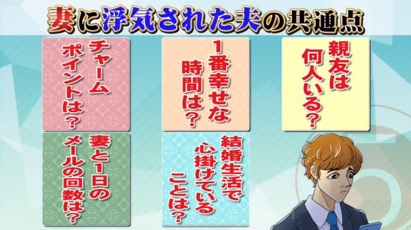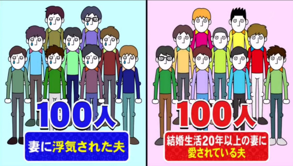節目組指出,根據日本政府統計,當地有超過2500萬對夫婦,當中竟有近3成的妻子曾承認出軌,比例更有上升趨勢!為此,節目組特別訪問100位曾被戴綠帽的男性以及結婚超過20年的幸福人夫,當中發現容易被「戴綠帽」的男性原來有5大共通點!
