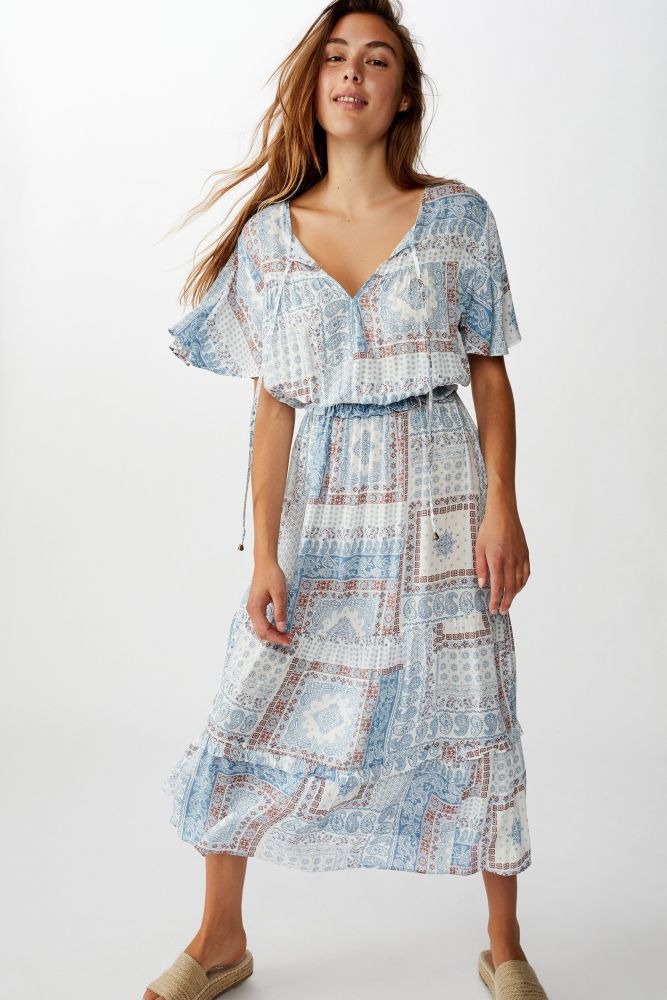 Woven Tabitha Short Sleeve Tiered Maxi Dress #Blue(原價港幣$289,現售$145)