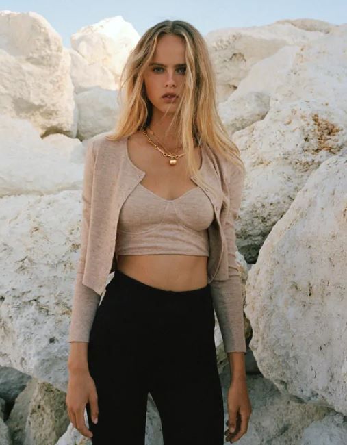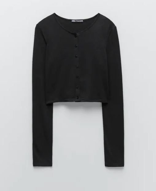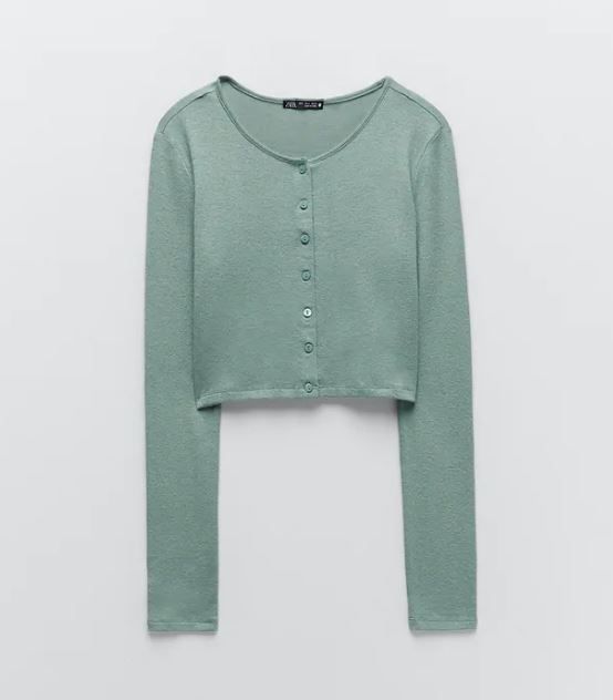 這款短版針織開襟衫,質地柔軟,前襟配單排鈕扣,除了有今年大熱的燕麥色,還有綠松石色、百搭黑色以及灰色供選擇。