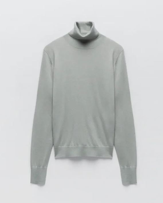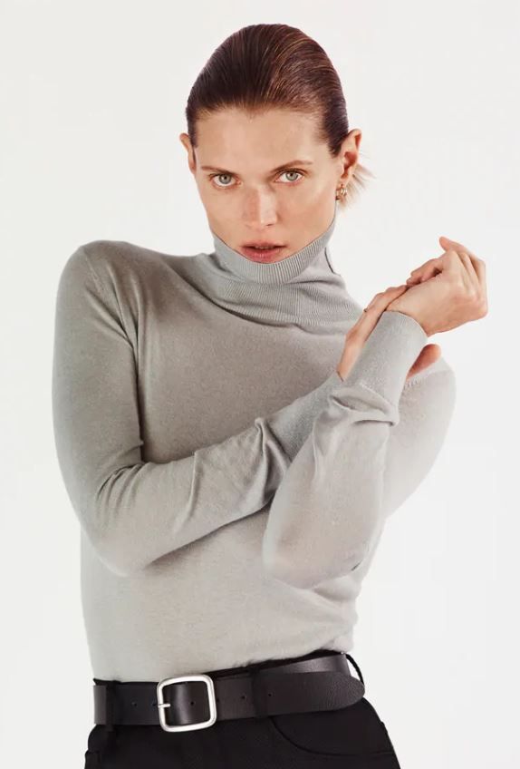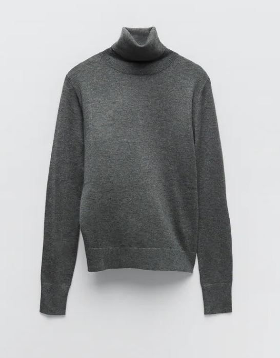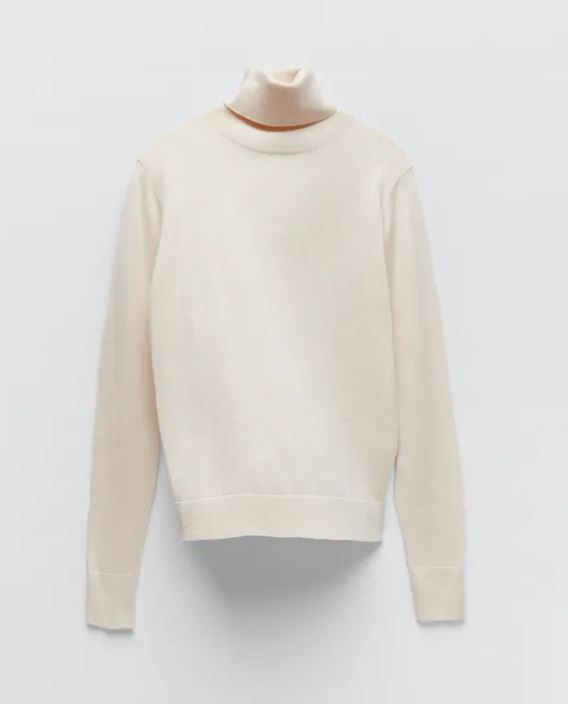 高領針織衫絕對是女生冬季穿搭必備單品之一。這款翻摺高領針織衫,領口及袖口以羅紋飾邊,緊貼肌膚的剪裁,起到修身顯瘦效果。質料採用環保纖維,質感柔軟舒適。