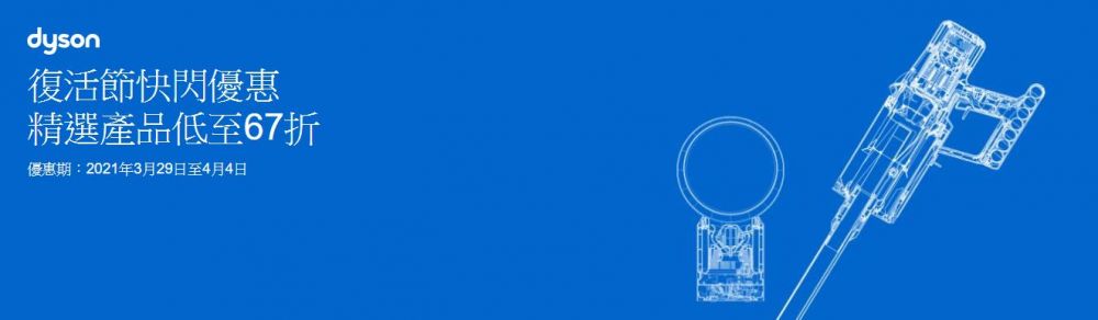復活節即將來臨,為了迎接這個假期,人氣品牌dyson罕見推出減價,精選商品更可享有低至67折的優惠!經典商品像是無線吸塵機、捲髮造型器、空氣清新機等也有折扣!如果使用指定信用卡以及購買指定金額更可有額外折扣!如果你也想入手的話,不妨趁這個優惠期限結束前購買吧!