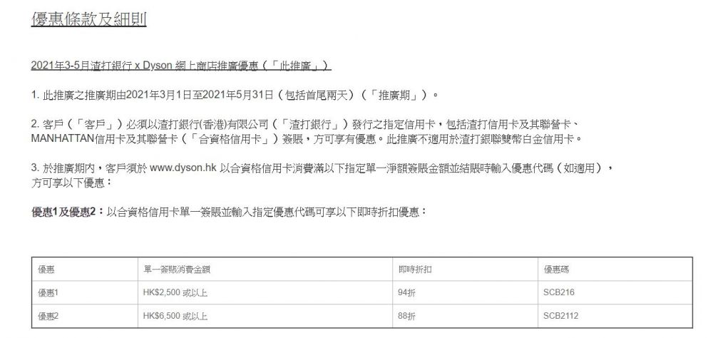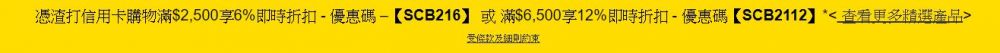 優惠須受條款及細則約束,記得在購物前先仔細閱讀條款。現在如果憑著渣打信用卡購物超過指定金額則可以享有額外折扣,即刻輸入優惠碼享用吧!