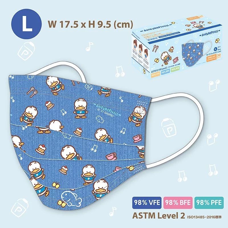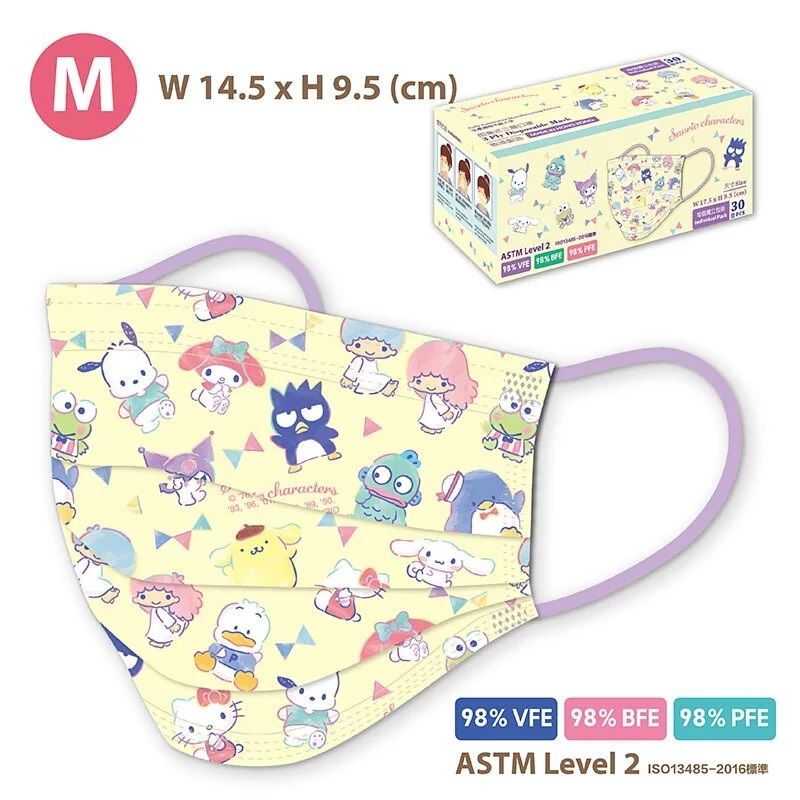 今次Sanrio推出的口罩設有兩個尺碼可供選擇,包括M (145 X 95mm)及L(175 X 95mm),一盒30個入,每個獨立包裝。款式設計有經典角色Hello Kitty、Little Twin Stars、AP鴨等,既可愛又吸睛,讓口罩造型不再是千篇一律!