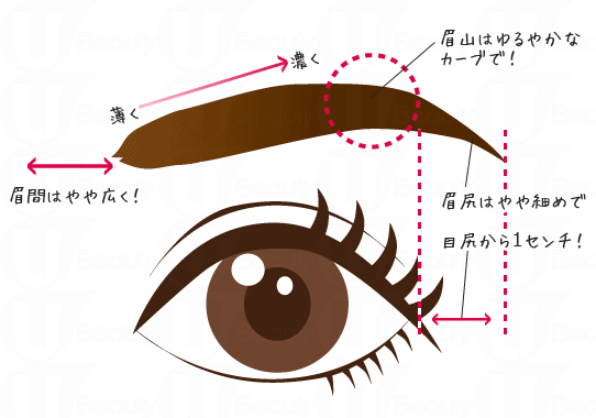 1. 眉的開端和末端成水平直線