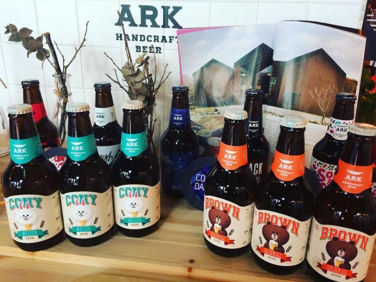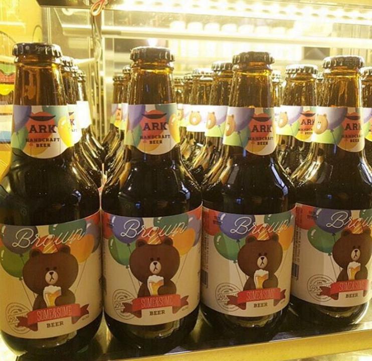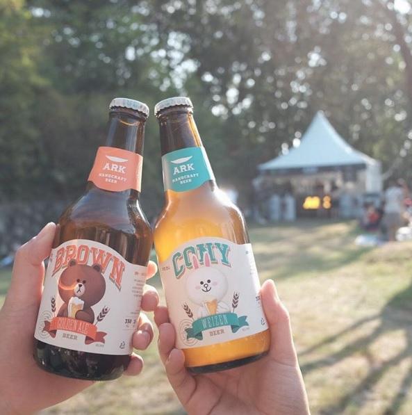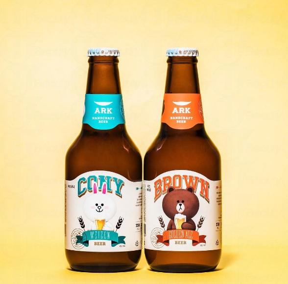 最近,熊大連酒類飲品都不放過,與韓國本土啤酒品牌ARK合作,推出以熊大和CONY做包裝的手製啤酒。