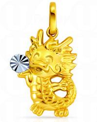 至於實惠一點的就有 K 金吊墜: 笑得不見眼睛的「金龍獻珠」K 金吊墜,寓意鴻運當頭; 「八面靈龍」則以 18K 黃金打造龍身,並以 18K 白色黃金作龍珠。