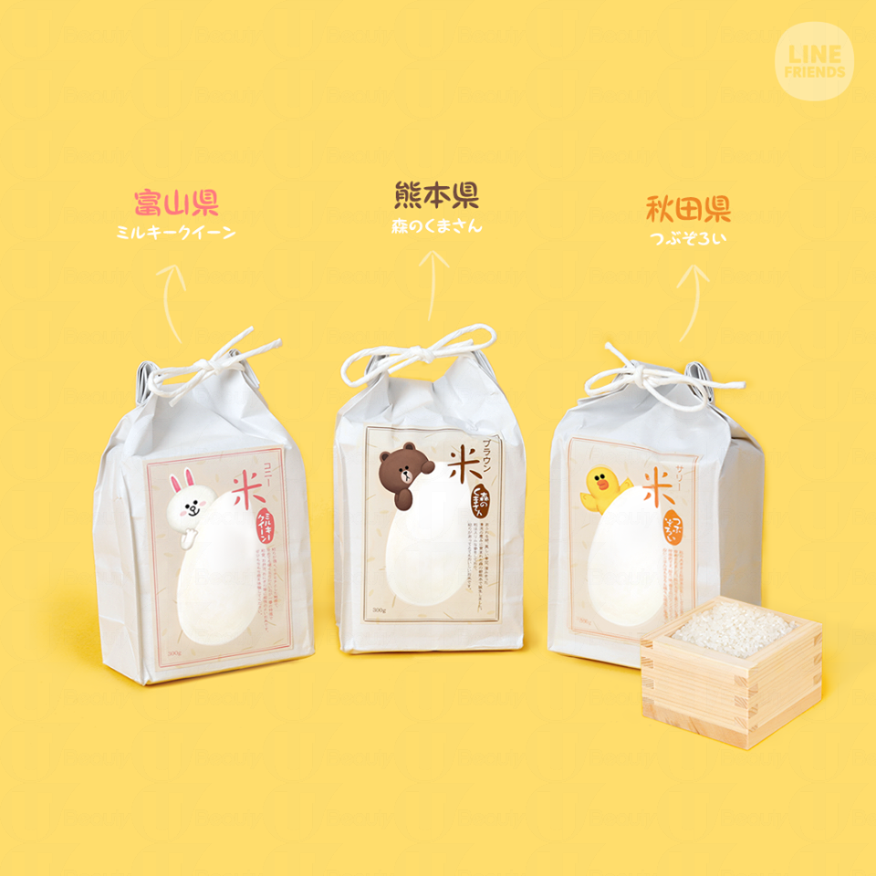你沒看錯,日本Line friends store推出的真是大米喔!熊大、兔兔及莎莉分別代表不同產地的白米,各有獨特的味道、口感和香氣喔~