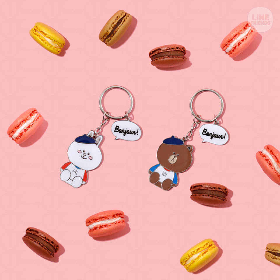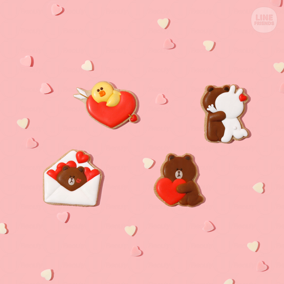 因應情人節,日本Line friends store特意推出愛心限定系列,產品包括攬枕、鎖匙扣及餅乾。