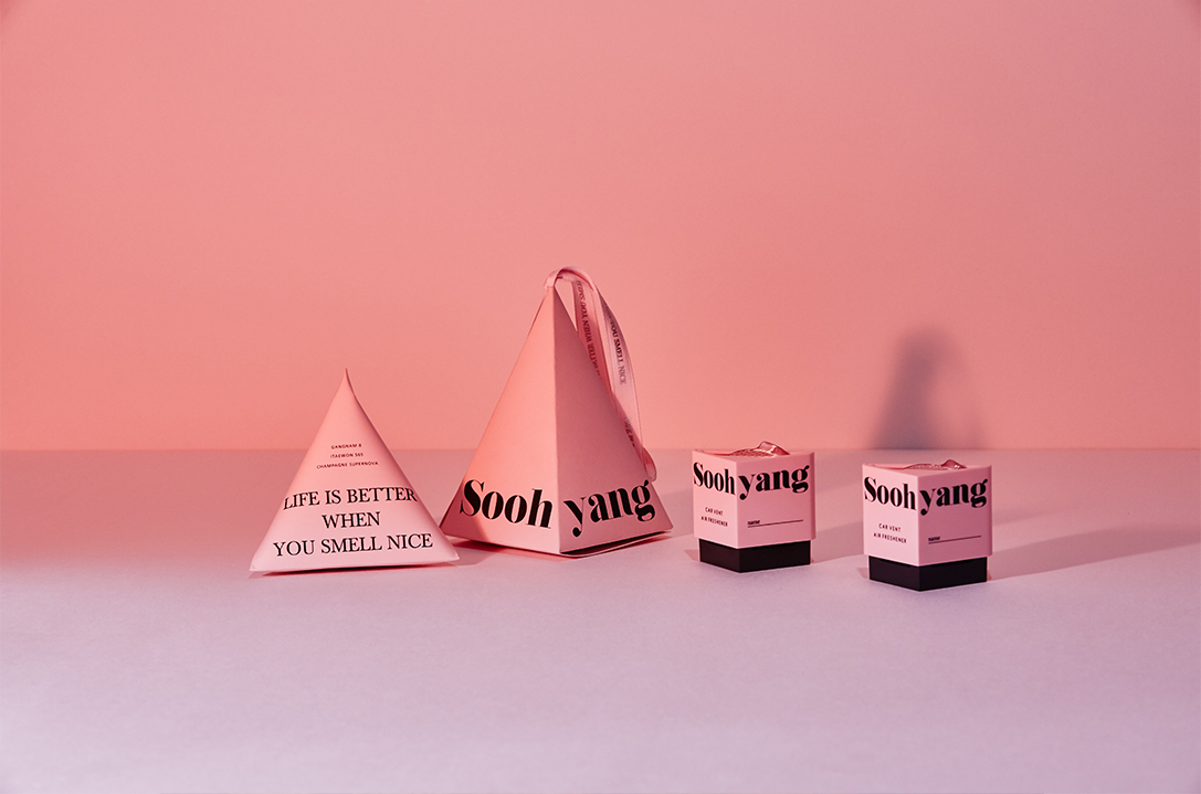 Soohyang的香氛以粉紅盒子配上黑色品牌Logo,在韓文代表「完美/卓越香氛」的意思。全部產品均於韓國製造。