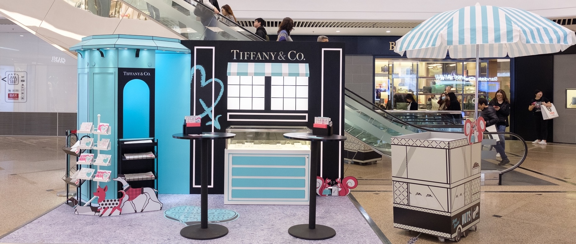 情人節將近,Tiffany於銅鑼灣時代廣場開設Pop Up,推出一系列珠寶,包括著名藍色盒子、購物袋及情信為創作藍本的各款吊飾。