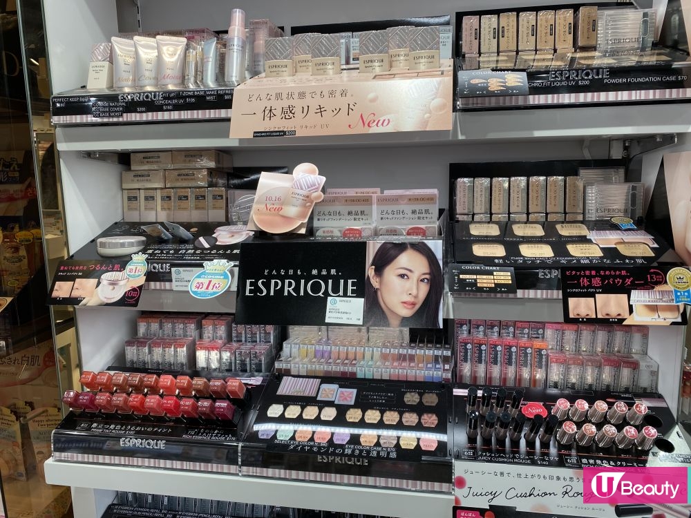最新氣墊唇彩(ESPRIQUE Juicy Cushion Rouge)用氣墊海綿輕輕一點,即可暈染雙唇。ESPRIQUE另一新品——肌感同步粉底液(Synchro fit Liquid UV)找來北川景子代言示範,散發無瑕妝感。