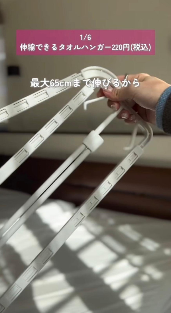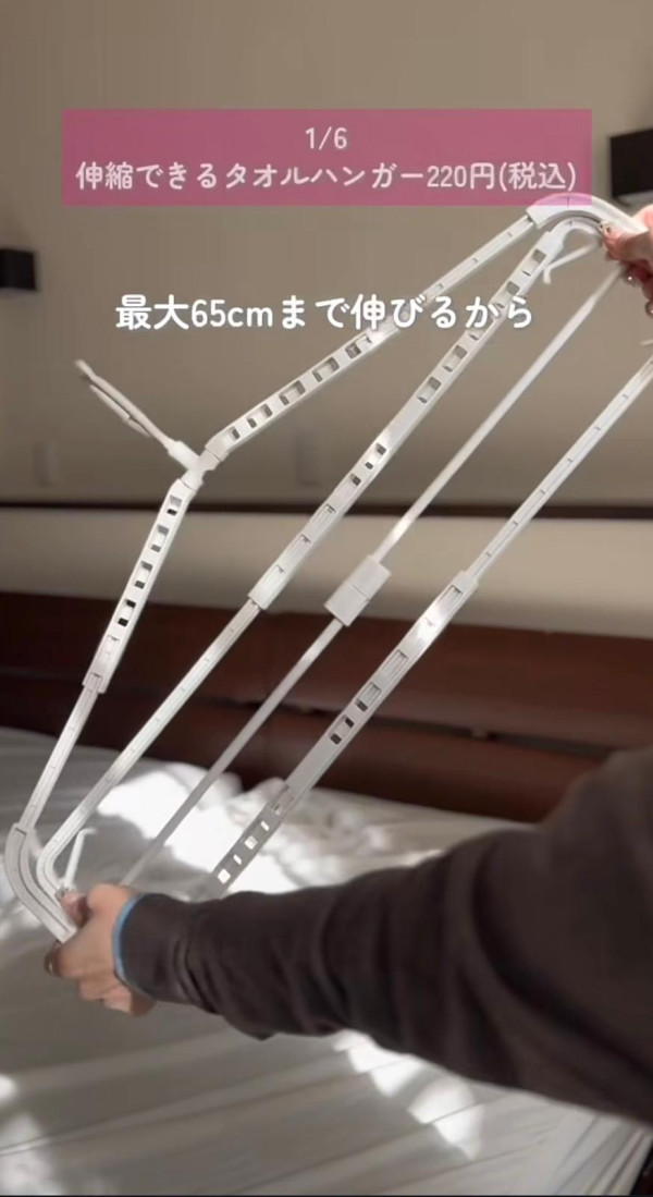家裡的浴巾太大條,普通衣架根本掛不下,摺疊掛又很難乾?這款衣架可以自由伸縮,最長可延伸至 65cm! 能將整條大浴巾完全攤開晾曬,增加接觸空氣的面積,大大縮短乾燥時間,避免產生異味。