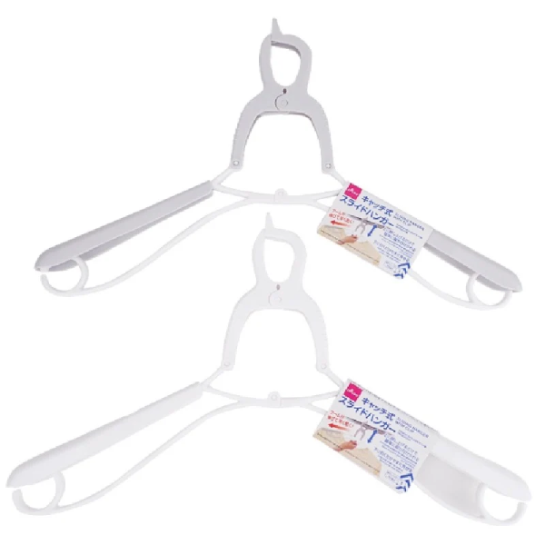 晾衣服很累,收衣服更累?這款衣架專為「懶人」設計!設有獨特機關, 只要向上一推就能鎖定掛好;收衣服時,向下一拉機關,兩側衣臂就會自動垂下,衣服直接滑落,單手就能秒速收衫,超減壓!而且它的肩寬也是可以調節的。