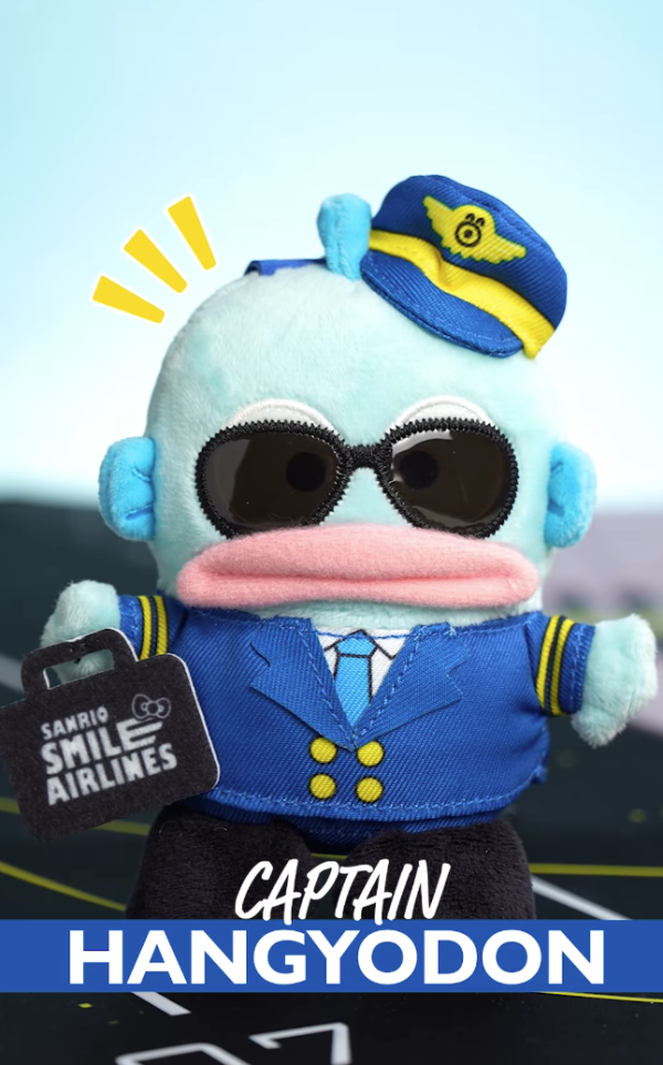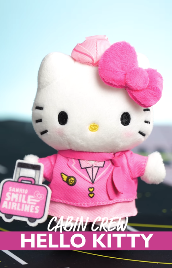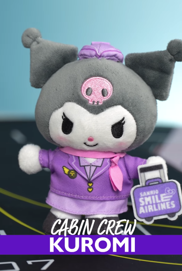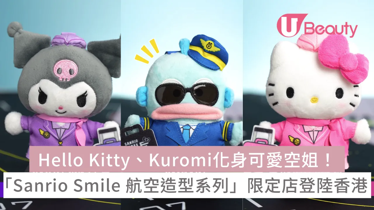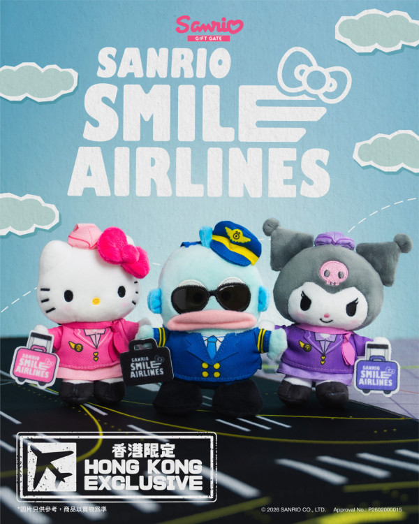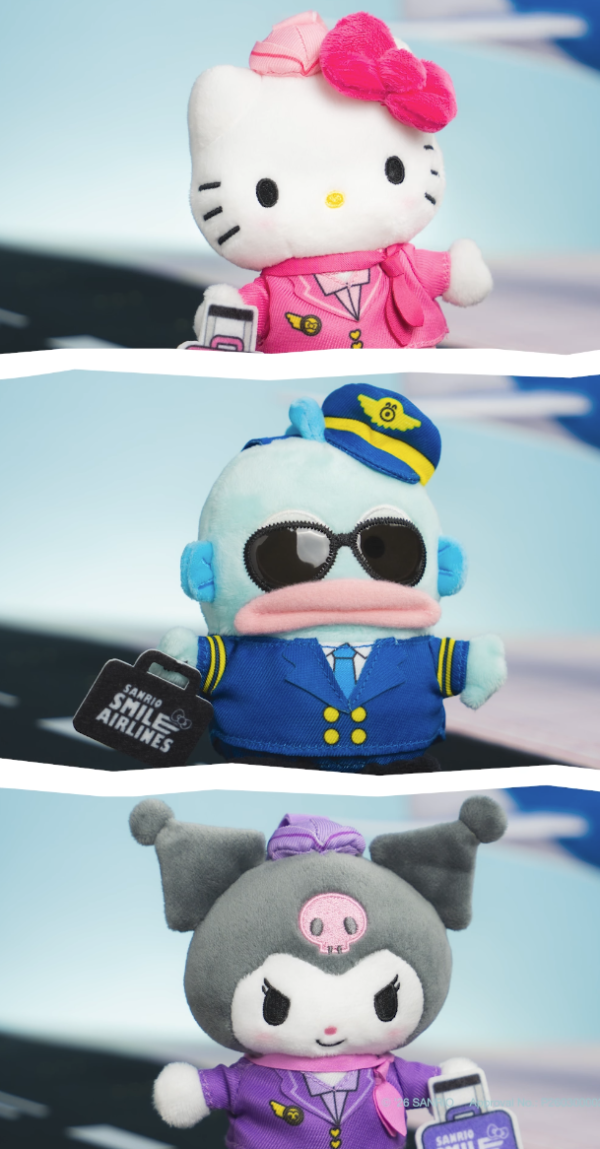 這次的香港獨家首發的 「Sanrio Smile 航空造型系列」讓三大元祖級萌主化身最帥氣的機組人員:Hello Kitty身穿粉紅色的空服員套裝配上粉紅蝴蝶結,甜美又專業;Kuromi則換上紫色飛行員制服,連行李箱也是專屬配色;水怪 Hangyodon戴上黑超太陽眼鏡與機長帽,搞笑幽默感依舊,簡直治癒力 Max !