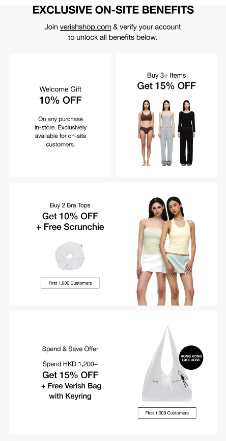只要在現場加入 verishshop.com 會員並驗證帳戶,即可解鎖以下限時優惠:
