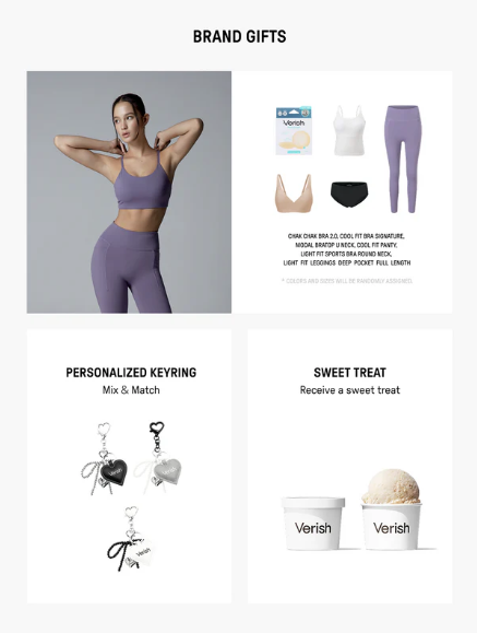 來自韓國的 Verish 成立於 2021 年,短短幾年便創下年銷量突破 600 億韓元的奇蹟。無論是聖水洞還是安國旗艦店,門外永遠大排長龍。品牌宗旨是「要穿得舒服,更要穿得有質感」,將內衣與生活美學完美結合,其運動服及家居服的質感更是不輸時尚大牌,絕對值得一試。