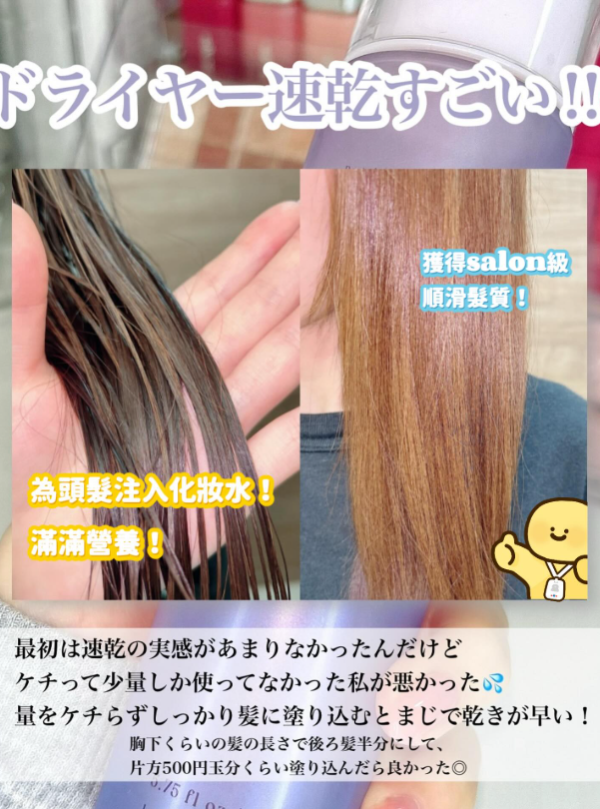 近期有一支頭髮化妝水(髮妝水),於Threads、日網SNS上引起極高討論度!不少網民更為它取名為「速乾髮妝水」,大讚其神奇功效,不單可以縮短吹頭時間,而且可以修復熱損傷,用後更可以將毛躁髮絲變得柔亮順滑。