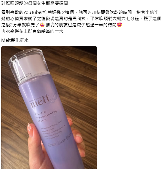 「這真的是黑科技,平常吹頭髮大概六七分鐘,擦了這個之後2分半就吹完了」網民反應