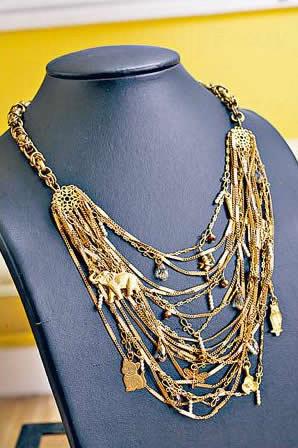 有 Madame Reve 最愛製作的動物銅片掛飾,不過將多條幼金鏈縱橫交錯地放在一起,還加入圓珠和水晶珠,立時豐富了視覺效果。($3,180)