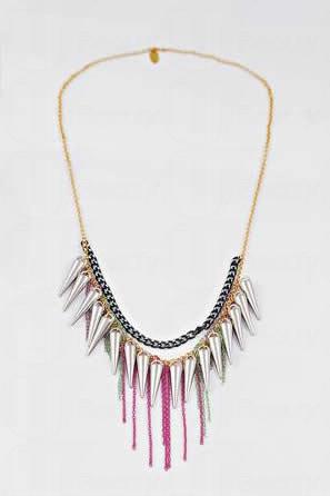 屬於希臘品牌 Katerina Psoma,一排的巨型「窩釘」感覺硬朗,但加入了色彩艷麗的金屬鏈襯托後,卻不失女性化味道。($1,650)