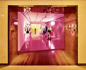3 樓屬女士區域,以 LED 燈砌成的品牌 Monogram 圖案牆。