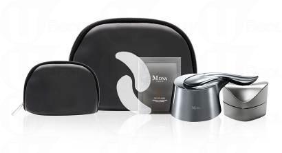 而尊貴限量驚喜套裝包括有泥膜吸附美容儀 SKIN REJUVENATOR;礦物泥面膜 CHROME CLAY MASK (50mL);面膜清薄片MASK REMOVER SHEETS 50張刮板、底座、清潔布;修護眼膜 THE EYE MASK 2對以及限量精美MDNA SKIN化妝袋乙個。