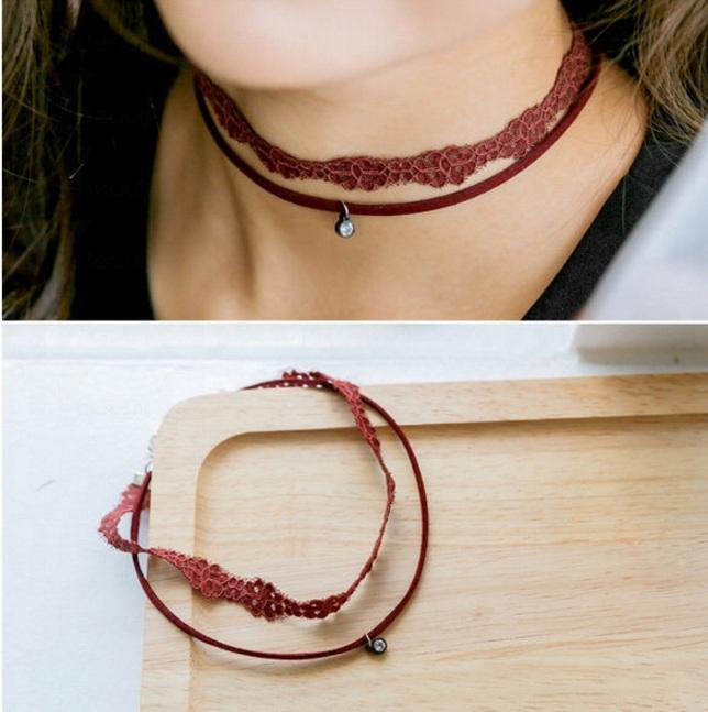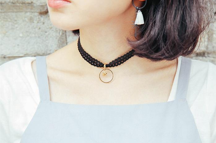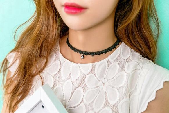 Lace及絲絨質款chocker帶女人味,單條choker配上小吊飾則較少女、可愛一點。