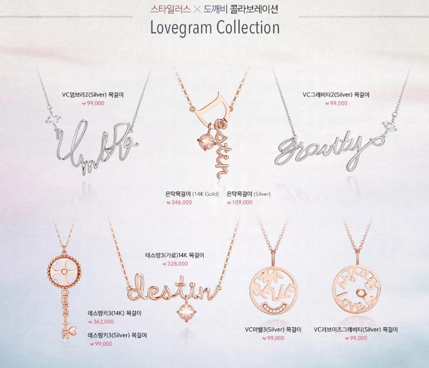 是次的系列名為Lovegram Collection,意指愛情的重量,用以形容鬼怪與鬼怪新娘之間的愛情是最為合適不過,每一條頸鏈的設計都別具心思,以主角們的對白為概念,與劇情產生共嗚。