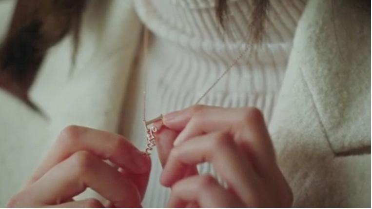 劇中下雨的場景十分多,包括金信與恩倬第一次相遇及在海邊二人共撐一傘的情景,這款以拉丁文“Umbra”(雨傘)字樣製成的頸鏈就是呼應金信在雨中走過的獨白,別有一番心思。
