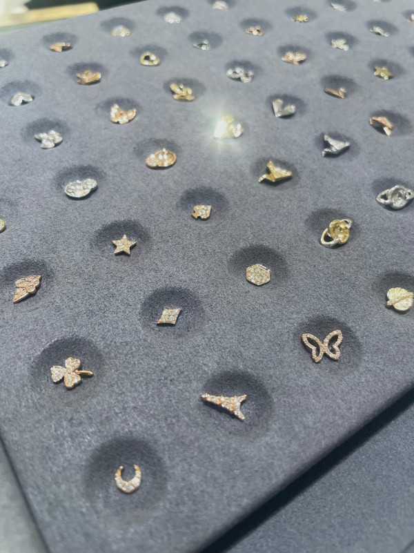 原來她戴的是個人訂製的Octo系列,無論鏈咀、耳環、戒指、手鏈也可因應自己的喜好去選擇18k金或白金的Love Lock case,配上自己喜歡的英文字母或糊蝶星星等不同配飾,再放2.5卡的寶石,當中Gem stone寶石就有17種之多,紅黃藍綠甚麼顏色都有,想玩mix寶石都得,像是自己去設計一款新首飾,因為選擇非常多,成個過程幾好玩,預訂大約3個星期後有貨,而且重點係製成品一定獨一無二, 不怕撞款,花費大約$7,000至$9,000,主要視乎選擇的配飾及款項,這個價錢可謂十分抵玩。
