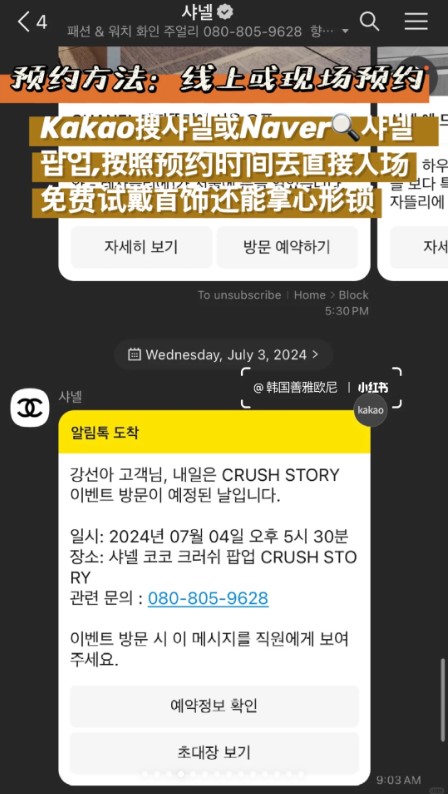 快閃店採取預約制,可通過下載CHANEL code找展示名稱預約,或者在KakaoTalk上搜尋「샤넬」,需要用韓國手機號碼登記,找到展覽名稱後進行預約。若無法預約,也可以現場排隊入場。不過最近有不少網民指活動已無法現場預約,大家抵達韓國後不妨先處理好電話卡再提早預約!