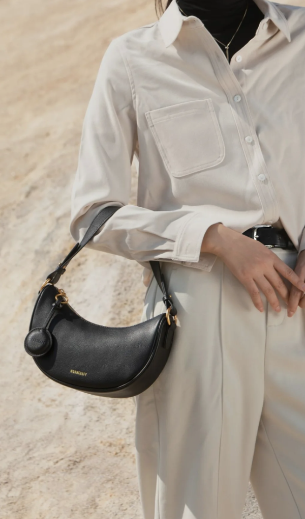 Moonshaft 月軸是另一個值得關注的香港本土皮革品牌,品牌理念是反對速食時裝文化,堅持為設計注入流行元素同時兼顧日常所需,以合理價格提供高品質皮革製品 。其 Crescent 弦月小牛皮袋設計簡約時尚,提供多種佩戴方式,性價比高。