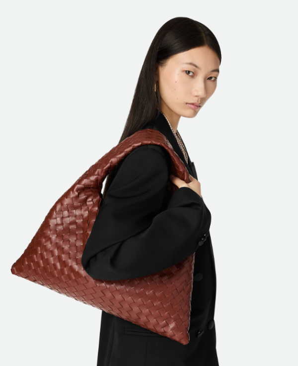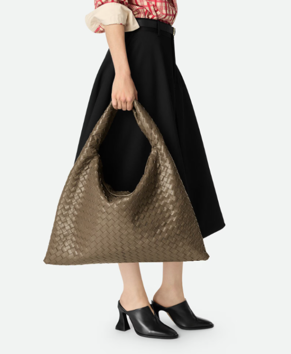 近年推崇「Quiet Luxury」(靜奢風),Bottega Veneta 無疑是箇中翹楚,品牌推出的Hop手袋不同於品牌某些結構感較強的包款,以品牌標誌性的Intrecciato皮革編織工藝,打造出無縫的立體金字塔廓形,呈現出一種近乎無縫、如流水般一體成型的視覺效果,手袋線條流暢優雅,完美體現低調奢華的精髓 。