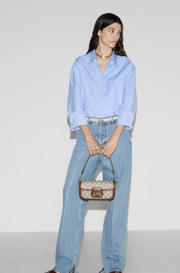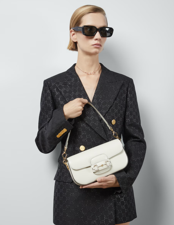 Gucci Horsebit 1955 系列是品牌創意總監從典藏設計中擷取靈感,重新推出的經典袋款。Gucci Horsebit 1955 肩背包是一款結構感十足的手袋,其標誌性的馬銜扣 (Horsebit) 細節源自品牌的馬術傳統,搭配復古的半月形或方正袋身,成為 Gucci 最具辨識度的品牌元素,這款手袋提供多種材質和尺寸,是 Gucci 極具代表性的作品之一。