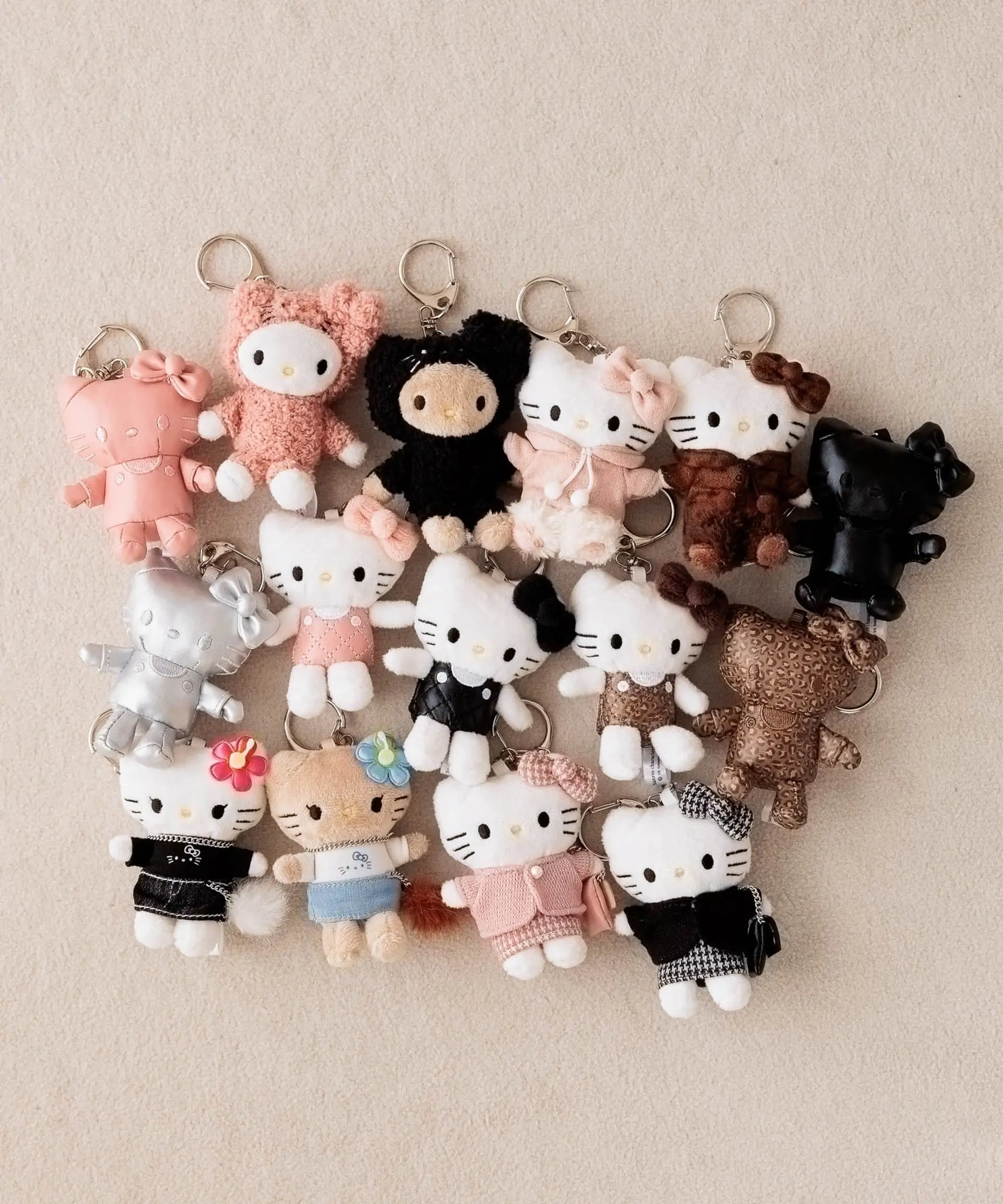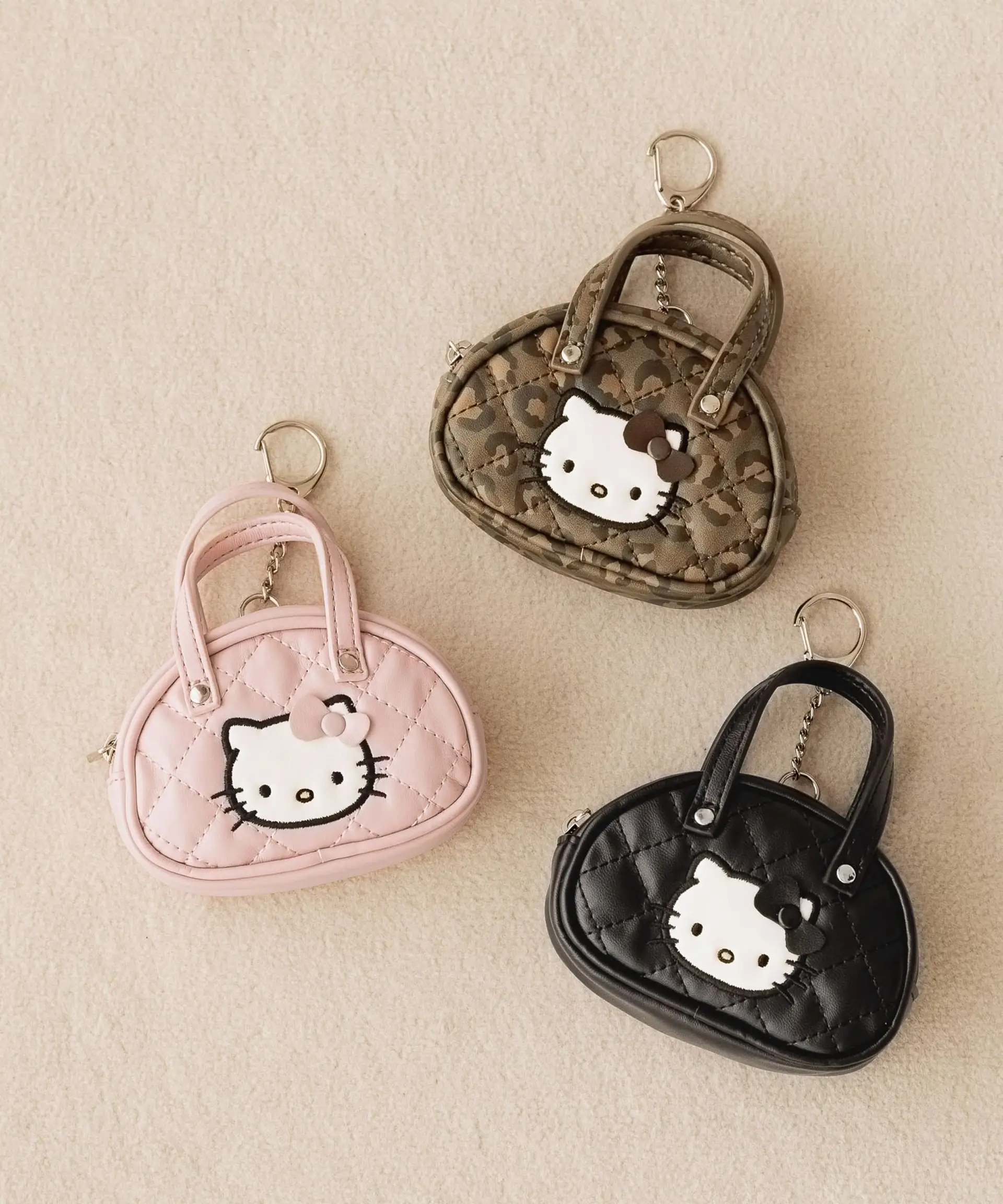Hello Kitty系列帶來多款風格多變的商品,滿足不同穿搭需求。其中之一的人氣Hello Kitty公仔掛飾全系列共15款造型,包括毛茸茸、豹紋、千鳥格等,每一款都充滿細節,港幣 $199就可以入手!